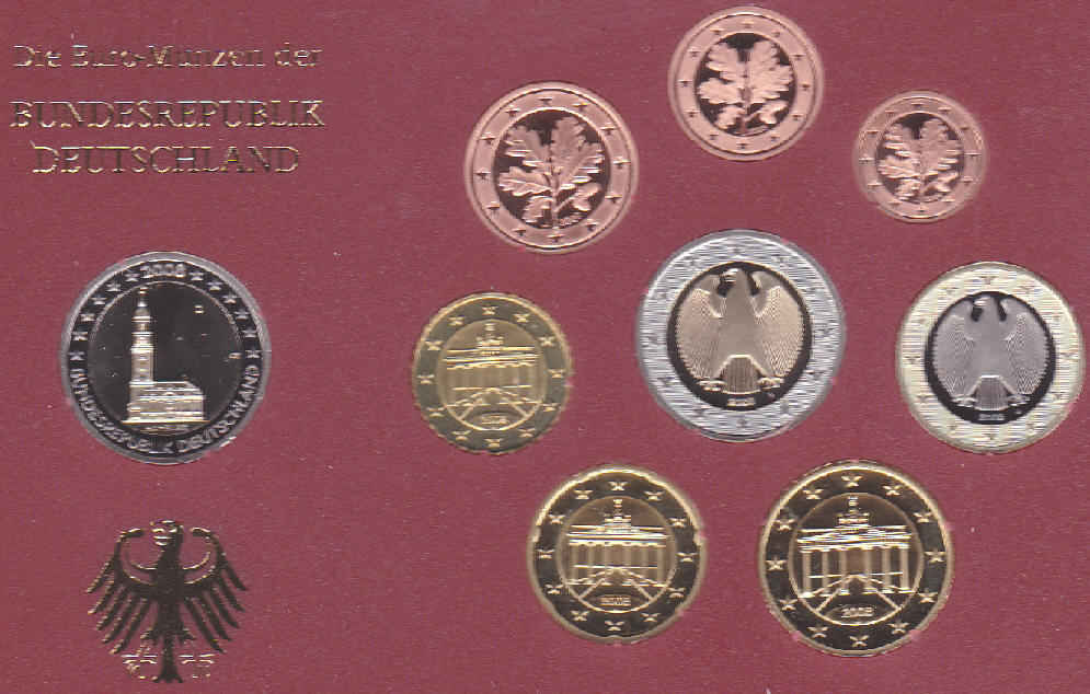 5,88Euro 2008 in "Polierter Platte" mit dem Prägebuchstaben J für Hamburg